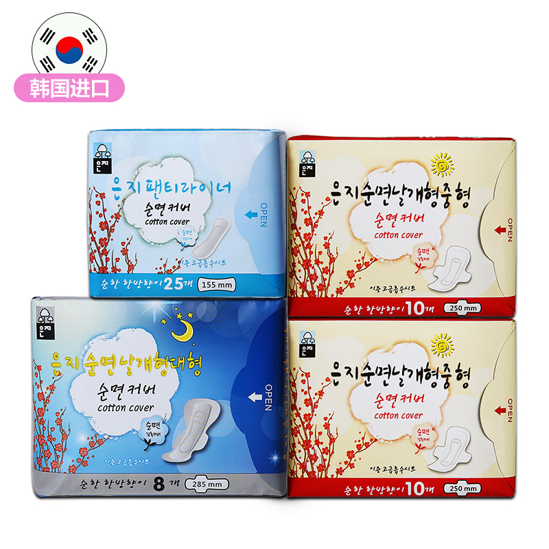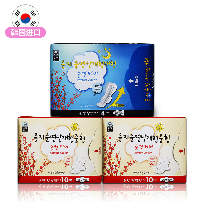 恩芝卫生巾 韩国原装进口卫生巾4包44片 棉柔超薄日夜用组合套装