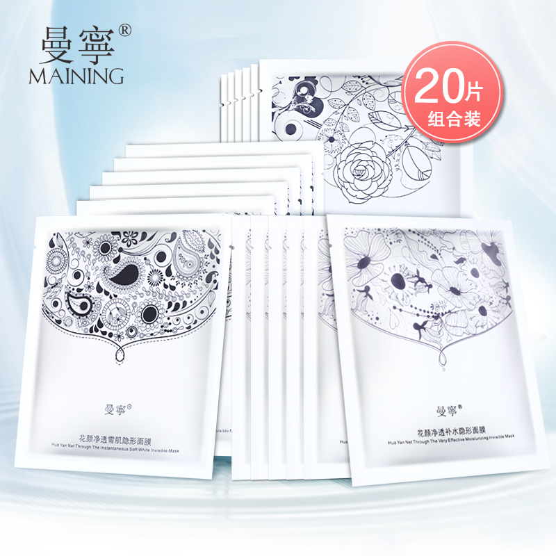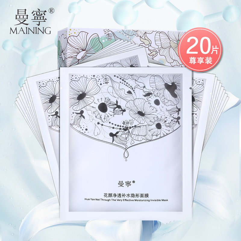 曼宁面膜正品花颜净透隐形面膜补水保湿套装晒后修护收缩毛孔20片