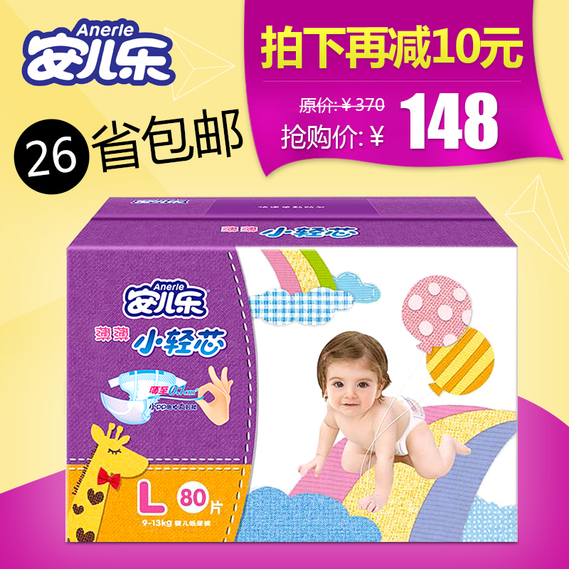 安儿乐纸尿裤小轻芯L80片箱装轻薄婴儿纸尿裤安儿乐婴儿尿不湿