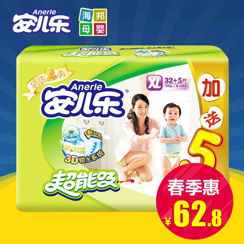 安儿乐2代瞬吸干爽纸尿裤XL32+5 棉柔干爽婴儿尿不湿 宝宝纸尿裤