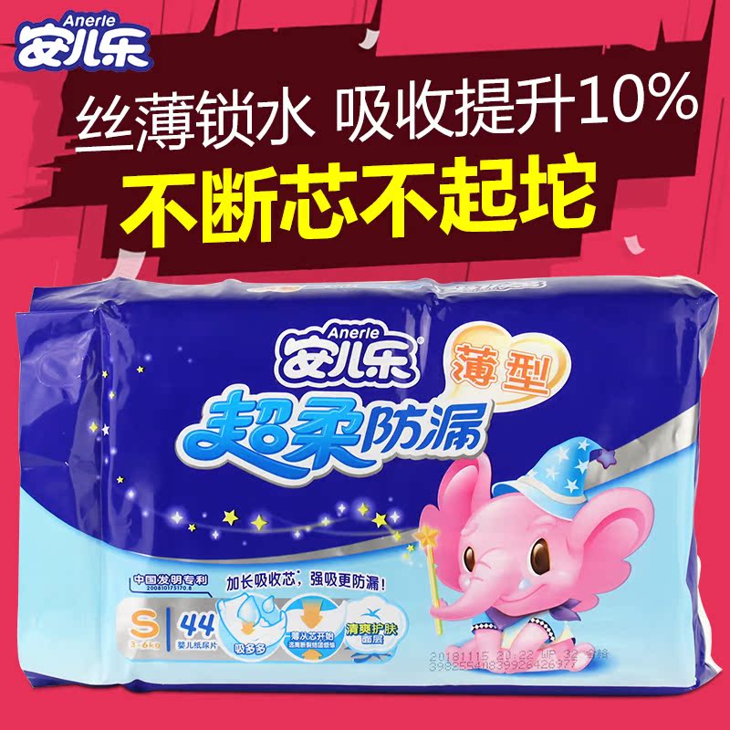 安儿乐超柔防漏纸尿片S44片安尔乐纸尿片超薄透气男女尿不湿尿片