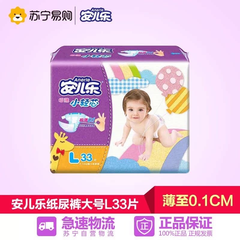【苏宁易购】安儿乐极薄小轻芯婴儿纸尿裤大号L33片