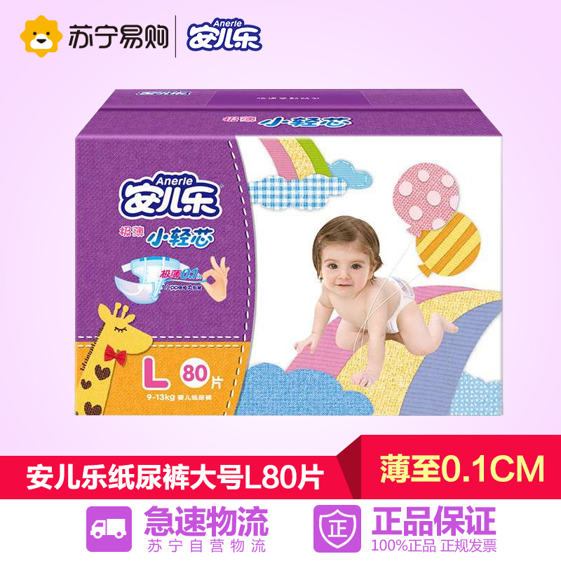 【苏宁易购】安儿乐 极薄小轻芯婴儿纸尿裤(电商箱装)大号L80片