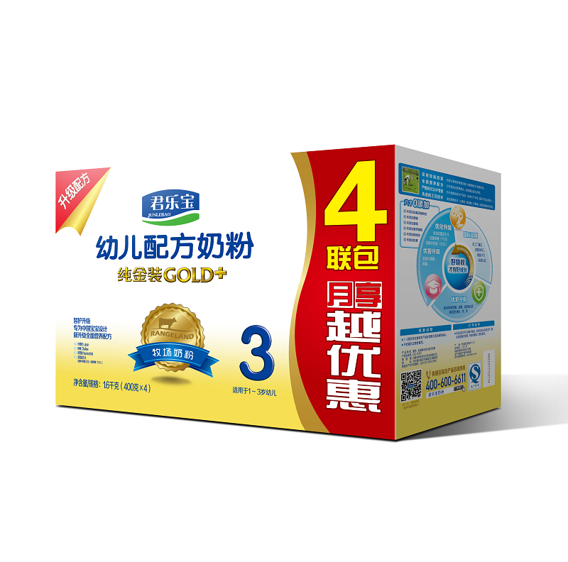的热门产品【红孩子母婴】君乐宝纯金装幼儿配方奶粉 3段4联包400g*4 1600g