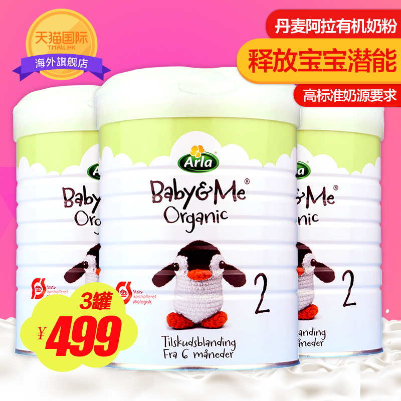 丹麦Arla/阿拉2段原装进口有机婴幼儿牛奶粉800g6月-3岁*3罐装
