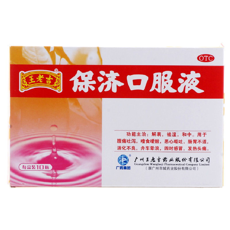 适用人群:不限 有效期:24个月 药品分类:非处方药 套餐类型:标准装 用法:口服 产品剂型:口服液 品牌:王老吉 类别:中药 规格:10ml*10支/盒 疾病:消化不良.脾胃不和 使用剂量:一次10~20毫升,一日3次 症状:食积不化.胃不适.呕吐.消化不良.肝胃不和 药品名称:保济口服液 药品通用名:保济口服液 批准文号:国药准字Z44020582 生产企业:广州王老吉药业有限公司 查看全文