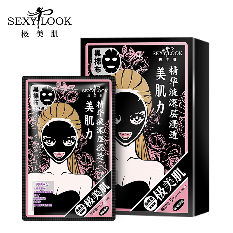 台湾SEXYLOOK 极美肌深层补水純棉黑面膜补水美白保湿面膜5片/盒