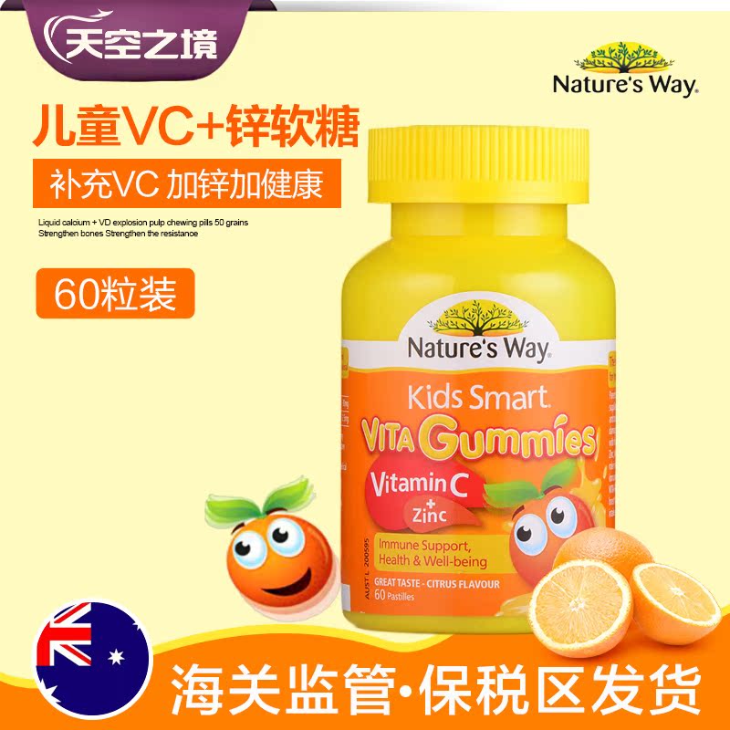 澳洲进口Nature's Way佳思敏 Kids Smart 儿童维生素C+锌软糖60粒