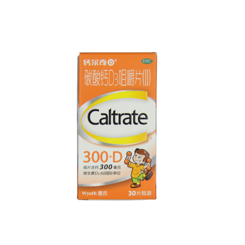 产品剂型:片剂 药品分类:非处方药 套餐类型:标准装 用法:口服 适用人群:成人 有效期:36个月 生产企业:惠氏制药有限公司 药品名称:碳酸钙D3片 药品通用名:碳酸钙D3片 品牌:CALTRATE/钙尔奇 类别:复方制剂 使用剂量:一次1片,一日1-2次 疾病:钙补充剂.骨质疏松症.维生素缺乏症.矿物质缺乏症 症状:骨质疏松.发育迟缓 药品商品名:碳酸钙D3片 批准文号:国药准字H10950029 规格:0.6g*60片/盒 查看全文