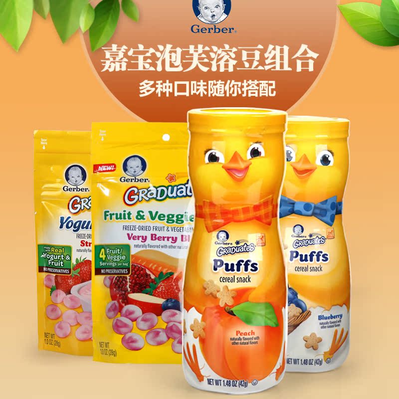 美国直邮嘉宝Gerber婴幼儿泡芙饼干*2+溶豆*2 婴幼儿宝宝零食