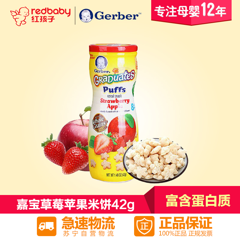 【红孩子母婴】嘉宝草莓苹果味星星米饼42g 宝宝辅食