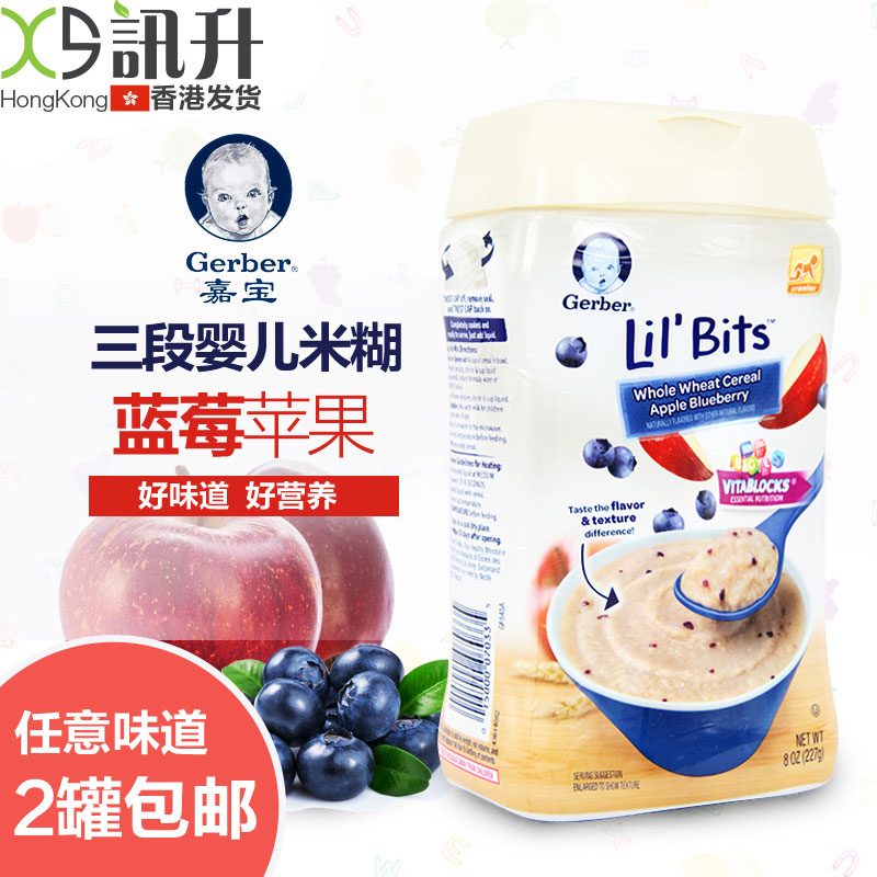 美国进口嘉宝Gerber 3三段蓝莓苹果全麦谷物营养婴儿米粉大米米糊