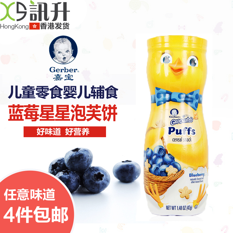 的热门产品美国进口gerber嘉宝蓝莓星星泡芙饼干宝宝辅食婴儿零食婴幼儿食品