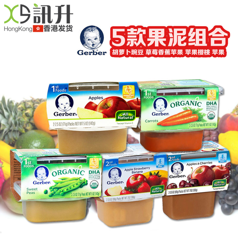 美国进口Gerber嘉宝1段果泥营养套装宝宝辅食西梅泥随意搭配5盒