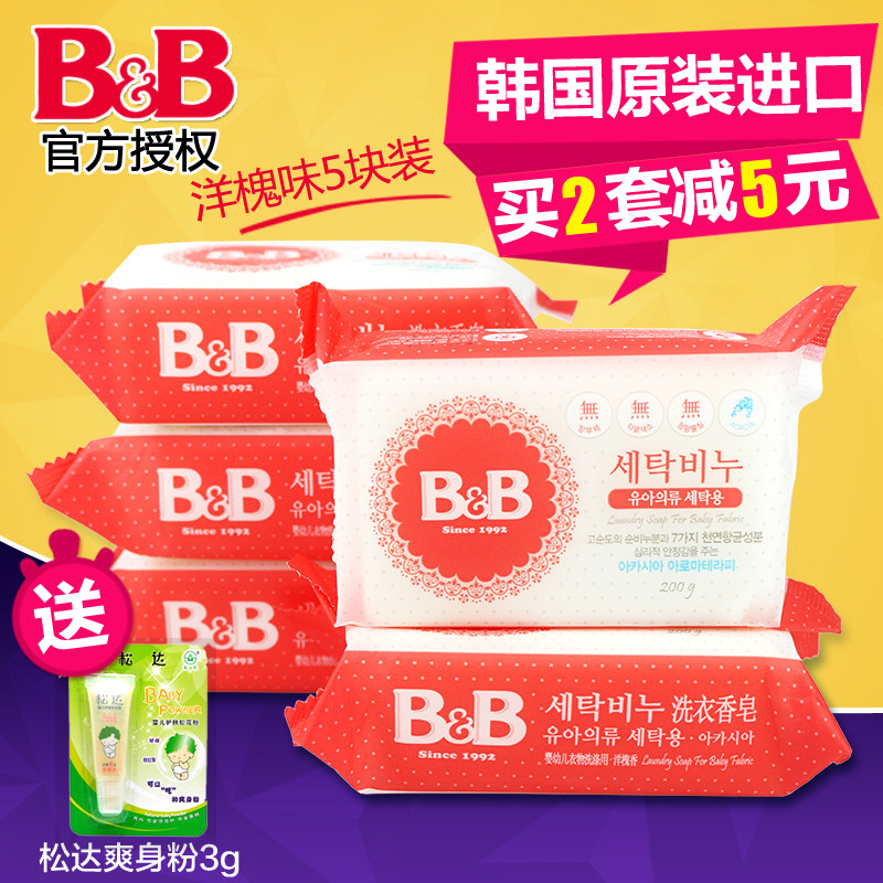 韩国保宁BB皂进口 宝宝洗衣皂婴儿肥皂儿童尿布皂香皂200g*5连包