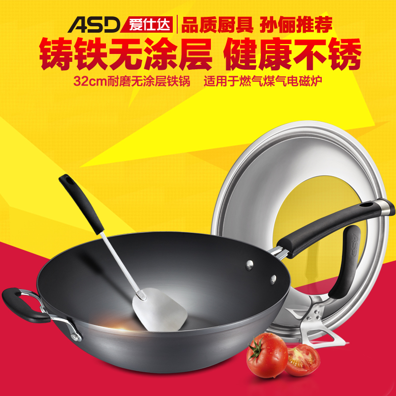 当当网百货 爱仕达ASD 32CM可立盖精铸铁炒锅 ZK8332E
