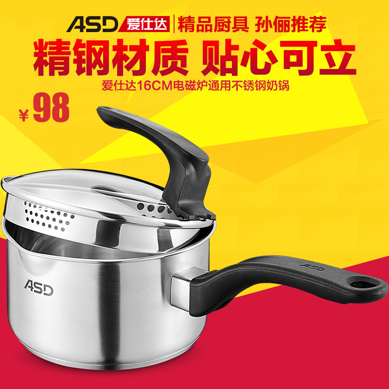 ASD/爱仕达ng1916不锈钢复底奶锅煮面锅可立盖一键调压小汤锅