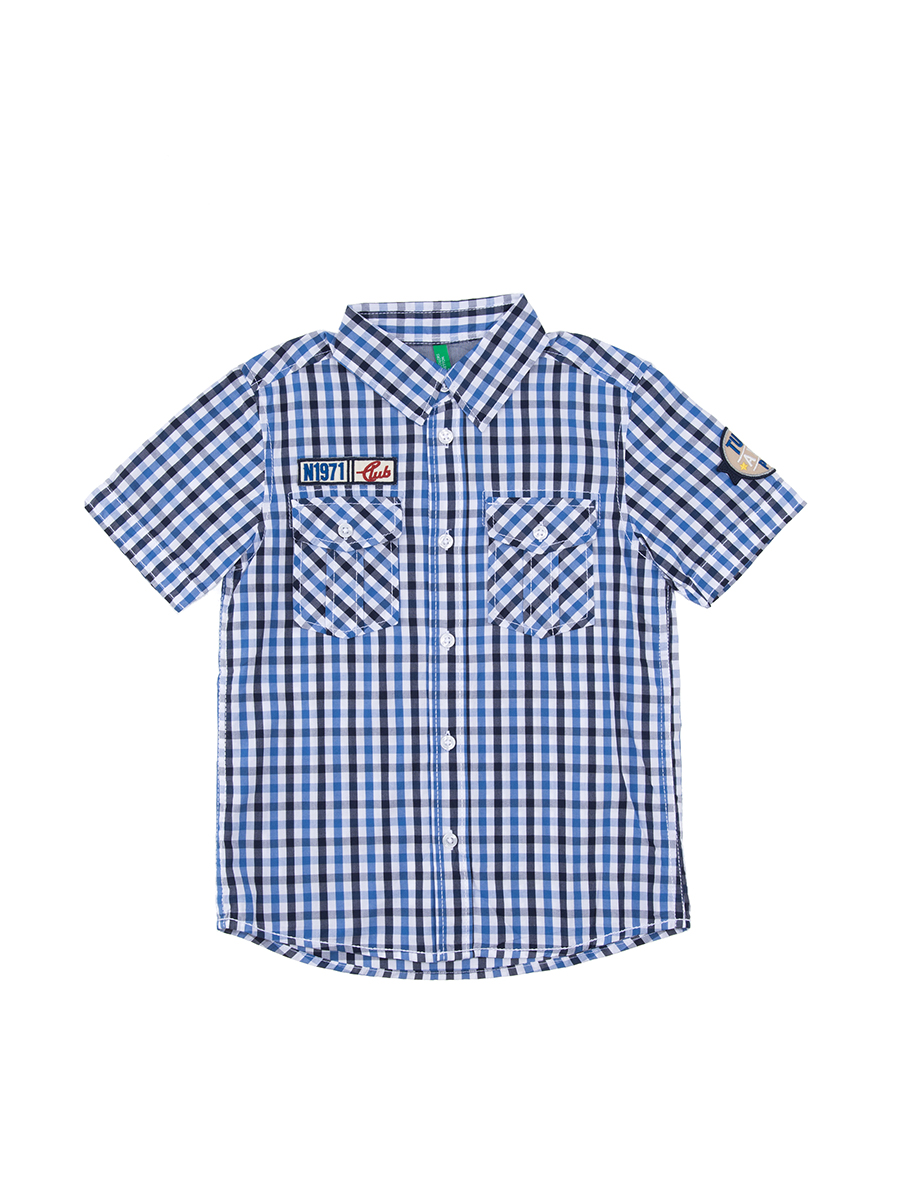 Benetton/贝纳通 蓝色格纹印花女童短袖衬衫