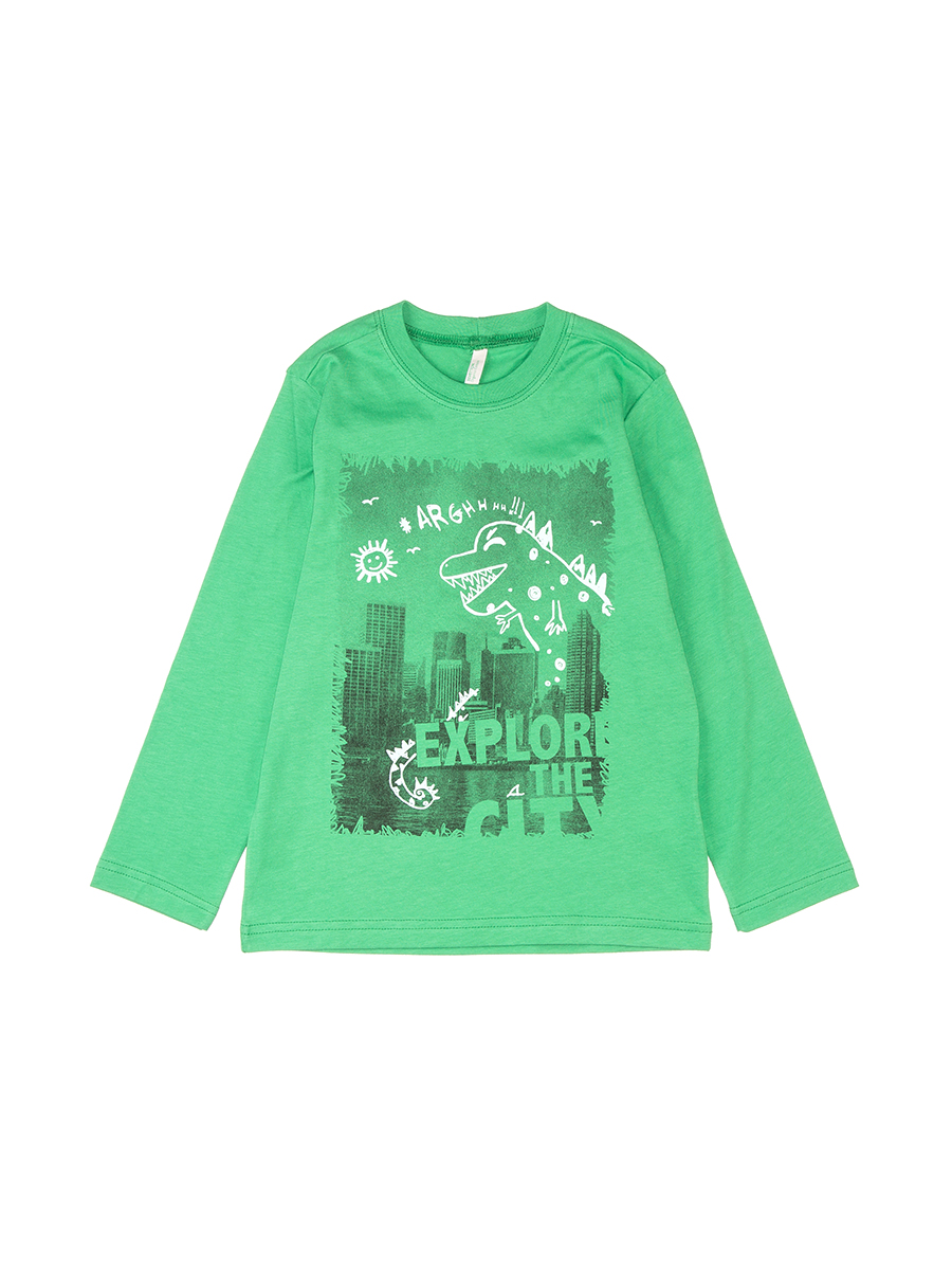 Benetton/贝纳通 草绿色图案饰圆领男童上衣
