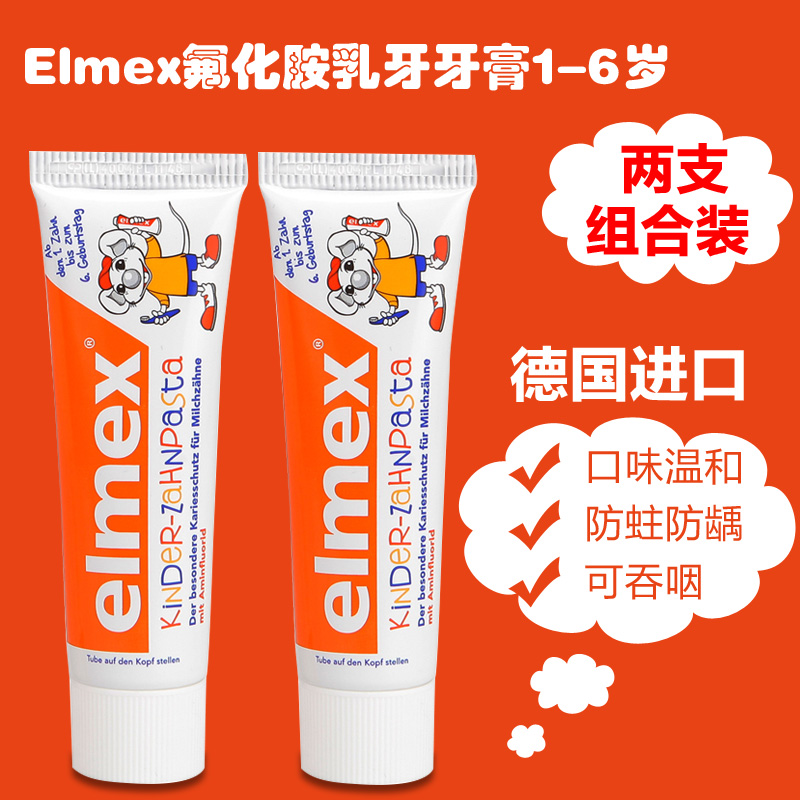 德国进口elmex婴幼儿童牙膏含氟化胺宝宝牙膏可食用吞咽1~6岁50ml