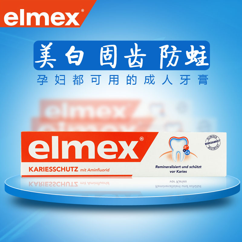 德国进口Elmex牙膏美白固齿预防成人牙膏预防蛀牙75ml孕妇亦可用