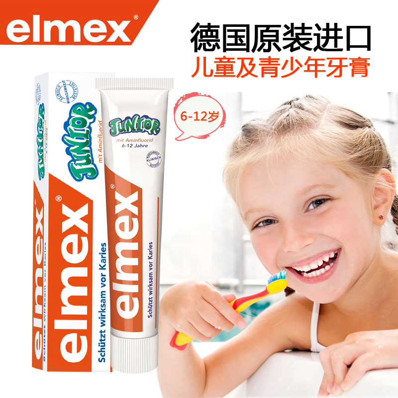 德国原装进口elmex儿童牙膏 青少年含氟牙膏食品级 防龋齿 6-12岁