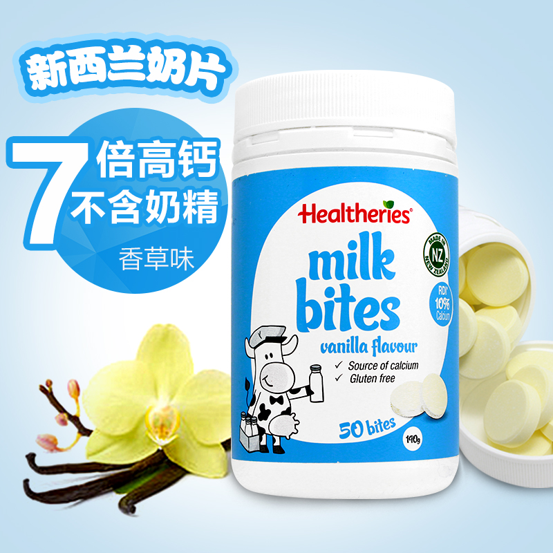 澳大利亚Healtheries贺寿利牛奶片儿童零食奶贝香草奶片瓶装50片