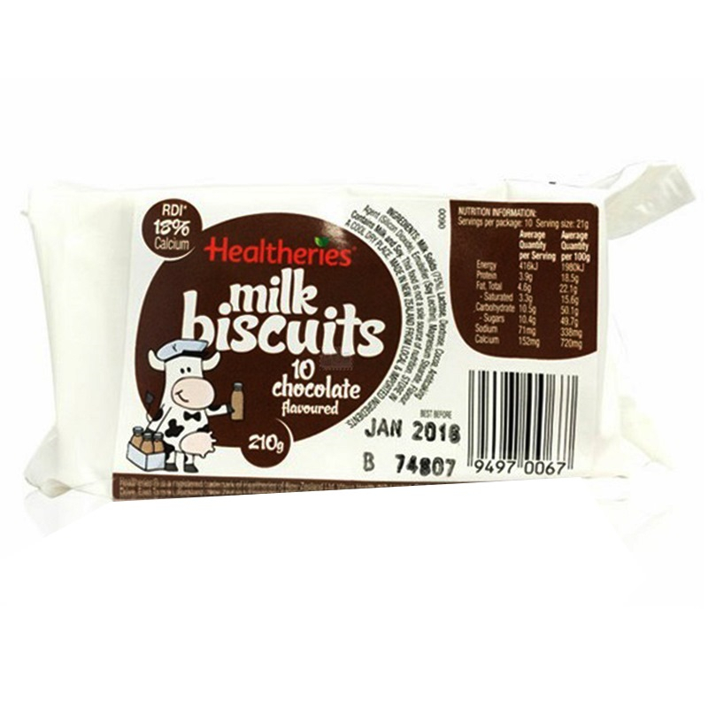 Healtheries贺寿利香浓牛奶片牛奶饼干块巧克力味210g 新西兰进口