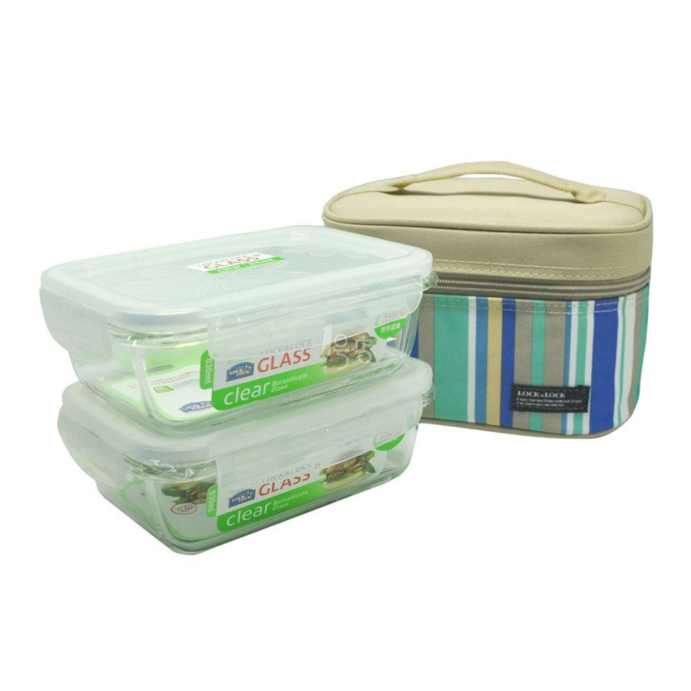 苏宁易购】乐扣乐扣LOCK&LOCK玻璃保鲜盒套装组送包380+650ML