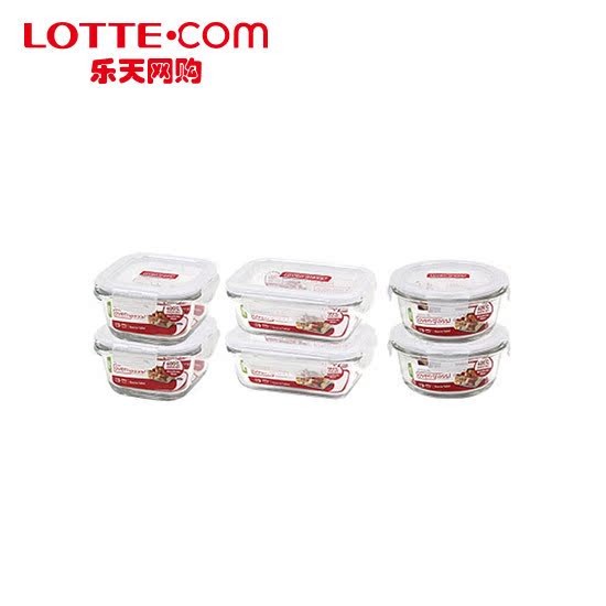 的热门产品LOTTE乐天网购 Lock&Lock 韩国直邮正品耐热玻璃保鲜盒6件套装