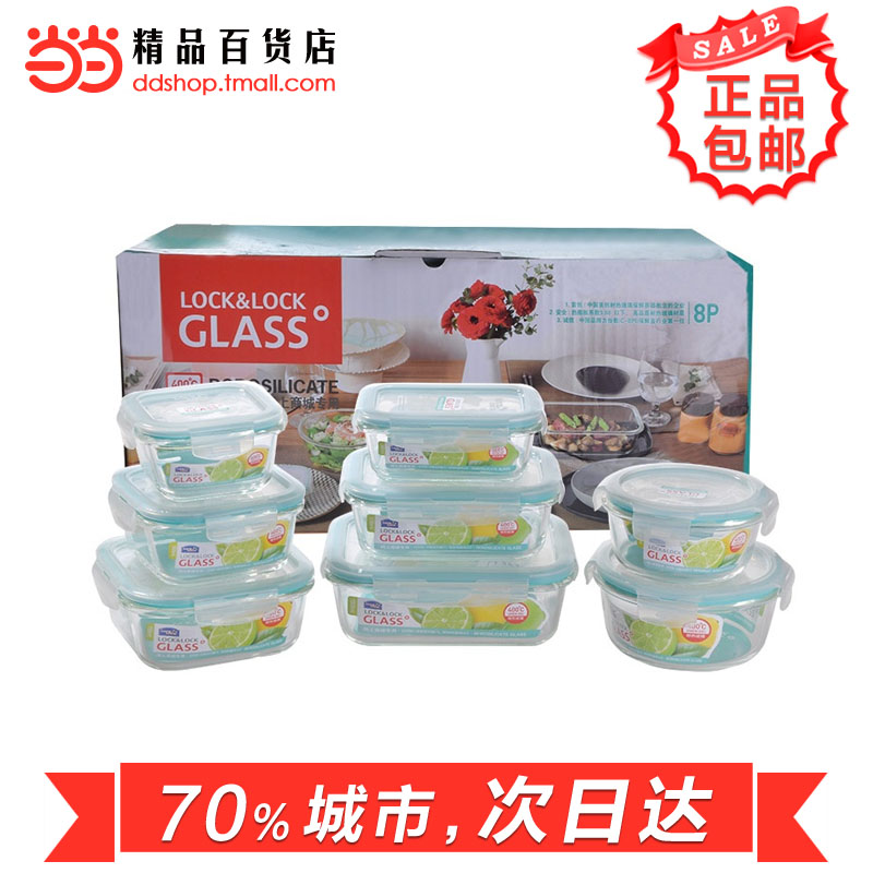 的热门产品当当网百货 LOCK&LOCK乐扣格拉斯耐热玻璃保鲜盒8件套 LLG224S903