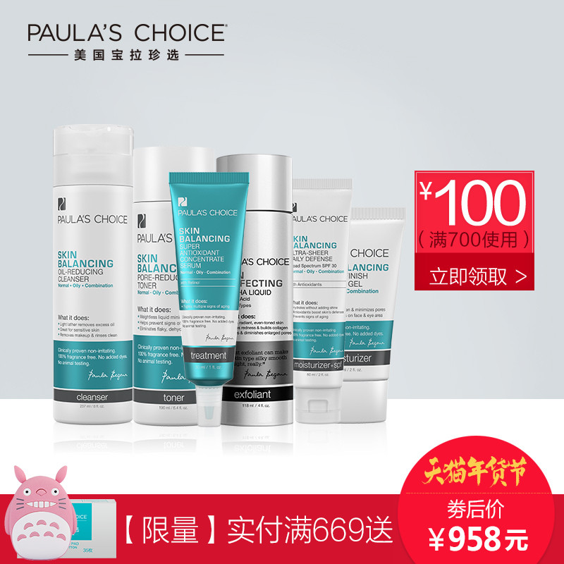 限期使用日期范围:2019-12-31至2019-12-31 功效:补水 保湿 抗痘 控油 去角质 收缩毛孔 祛痘/祛粉刺 去黑头 深层清洁 收缩毛孔舒缓肌肤 规格类型:正常规格 品牌:Paula‘s Choice/宝拉珍选 面部护理套装:平衡水油系列大全套 适合肤质:油性及混合性肤质 产地:美国 查看全文