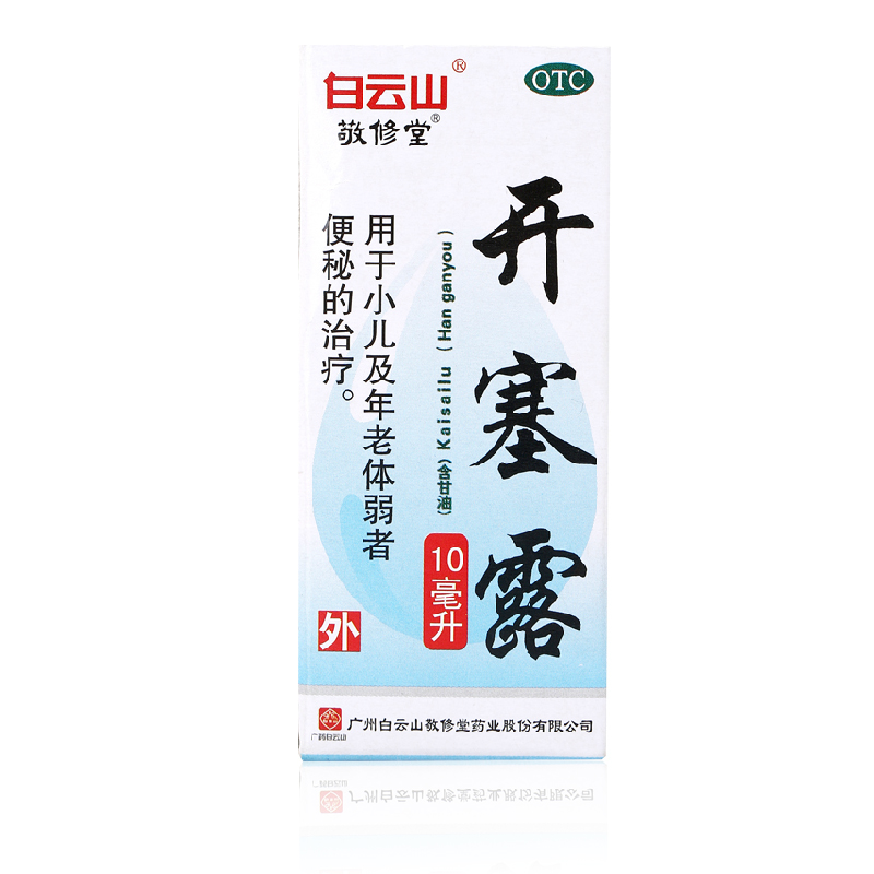 适用人群:不限 品牌:敬修堂 有效期:24个月 药品分类:非处方药 疾病:便秘 类别:化学药 产品剂型:外用液体剂 症状:大便秘结 生产企业:广州白云山敬修堂药业股份有限公司 用法:直肠给药 药品名称:开塞露 药品通用名:开塞露 规格:10ml*1支/盒 使用剂量:儿童一次1支 批准文号:国药准字H44024014 查看全文
