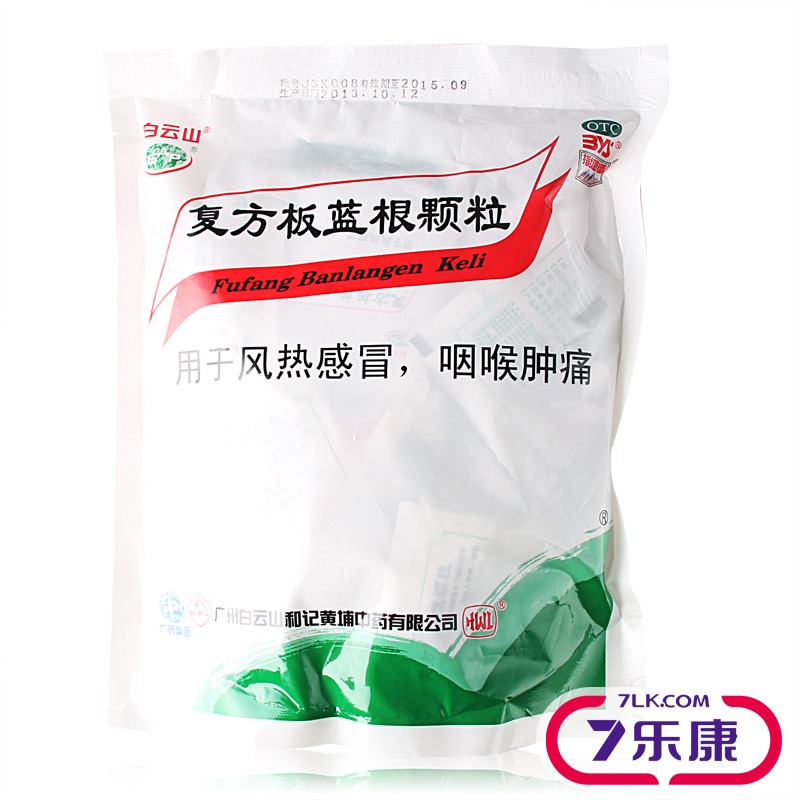 适用人群:不限 有效期:24个月 药品分类:非处方药 用法:口服 产品剂型:颗粒 品牌:白云山 类别:中药 生产企业:广州白云山和记黄埔中药有限公司 症状:咽痛.口干咽燥 疾病:风热感冒.上呼吸道感染 药品名称:复方板蓝根颗粒 药品通用名:复方板蓝根颗粒 使用剂量:一次1袋(15克),一日3次 批准文号:国药准字Z44023371 规格:15g*20小袋/包 查看全文