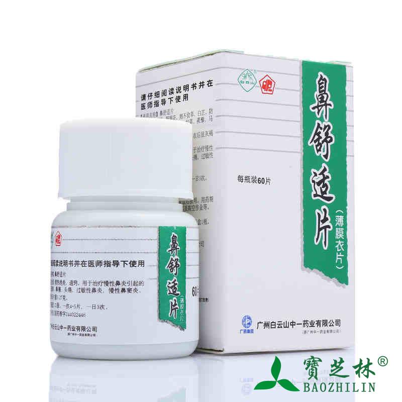 产品剂型:片剂 适用人群:不限 用法:口服 药品类别:中药 疾病:鼻炎 有效期:36个月 药品分类:处方药 品牌:白云山 症状:鼻塞 生产企业:广州白云山中一药业有限公司 批准文号:国药准字Z44022446 药品名称:鼻舒适片 药品通用名:鼻舒适片 使用剂量:一次4-5片,一天3次 药品规格:0.27g*90片*1瓶/盒 查看全文