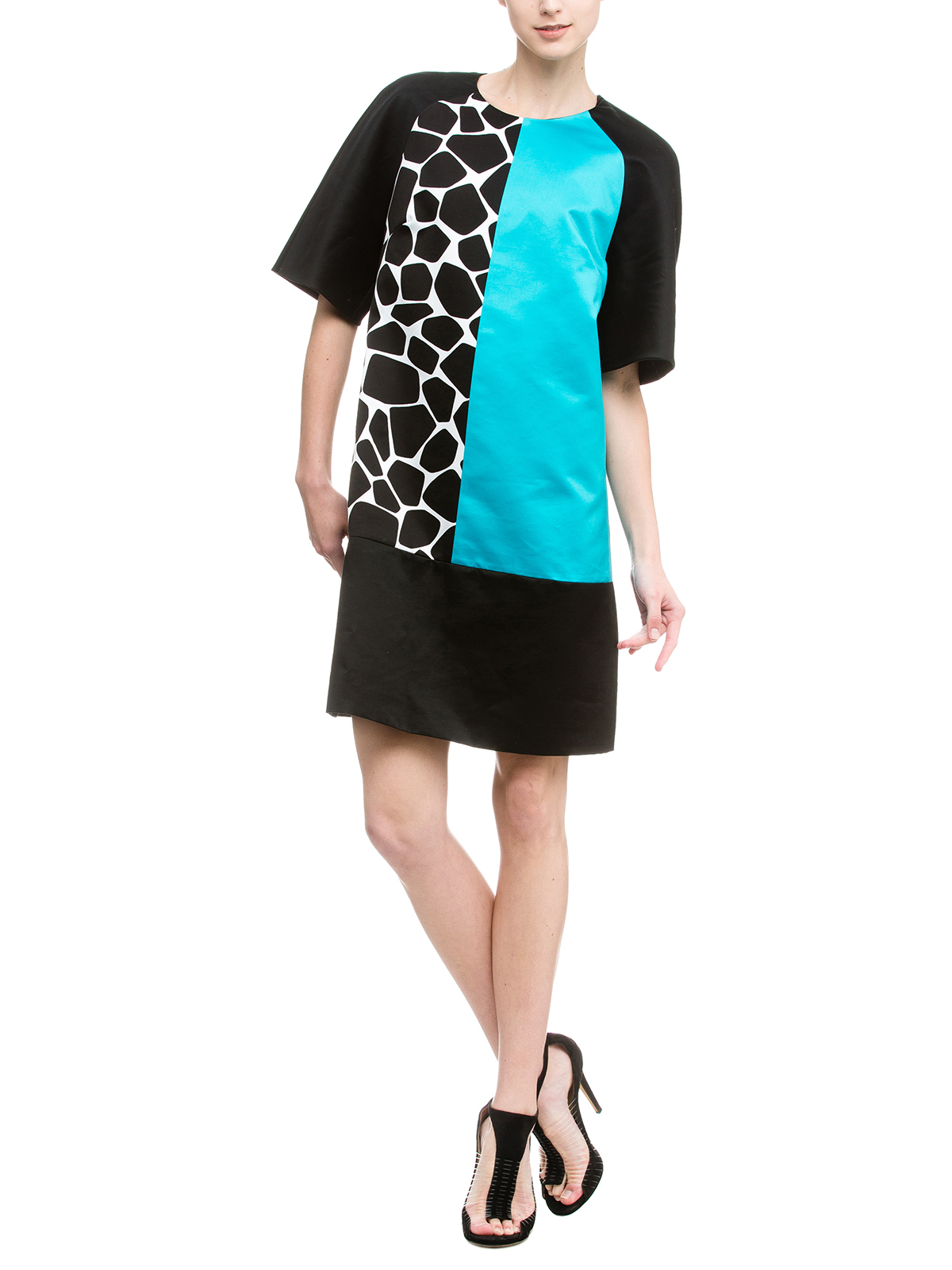 Michael Kors|蓝色不对称图案拼接短袖上衣