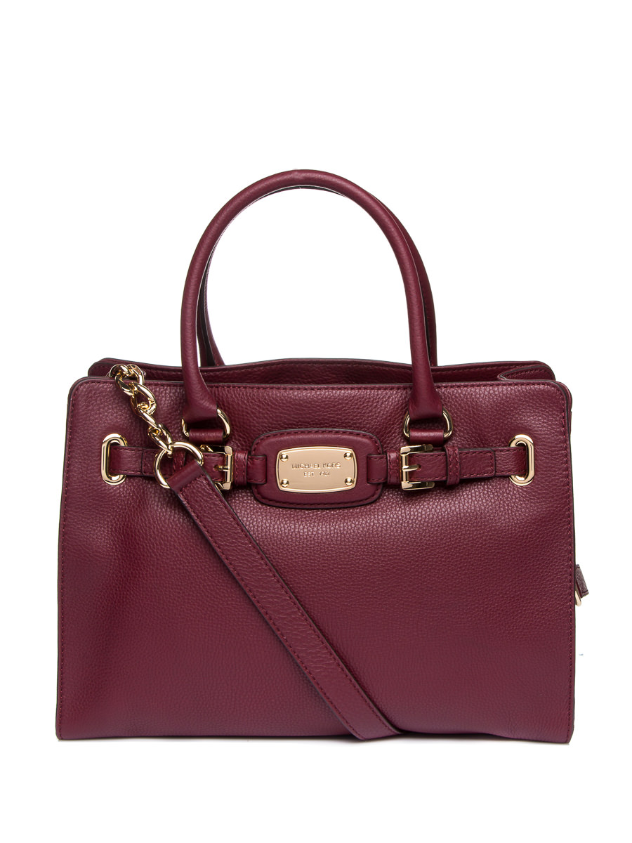 的热门产品Michael Kors HAMILTON系列酒红色荔枝纹针扣襻带金属链手提肩包