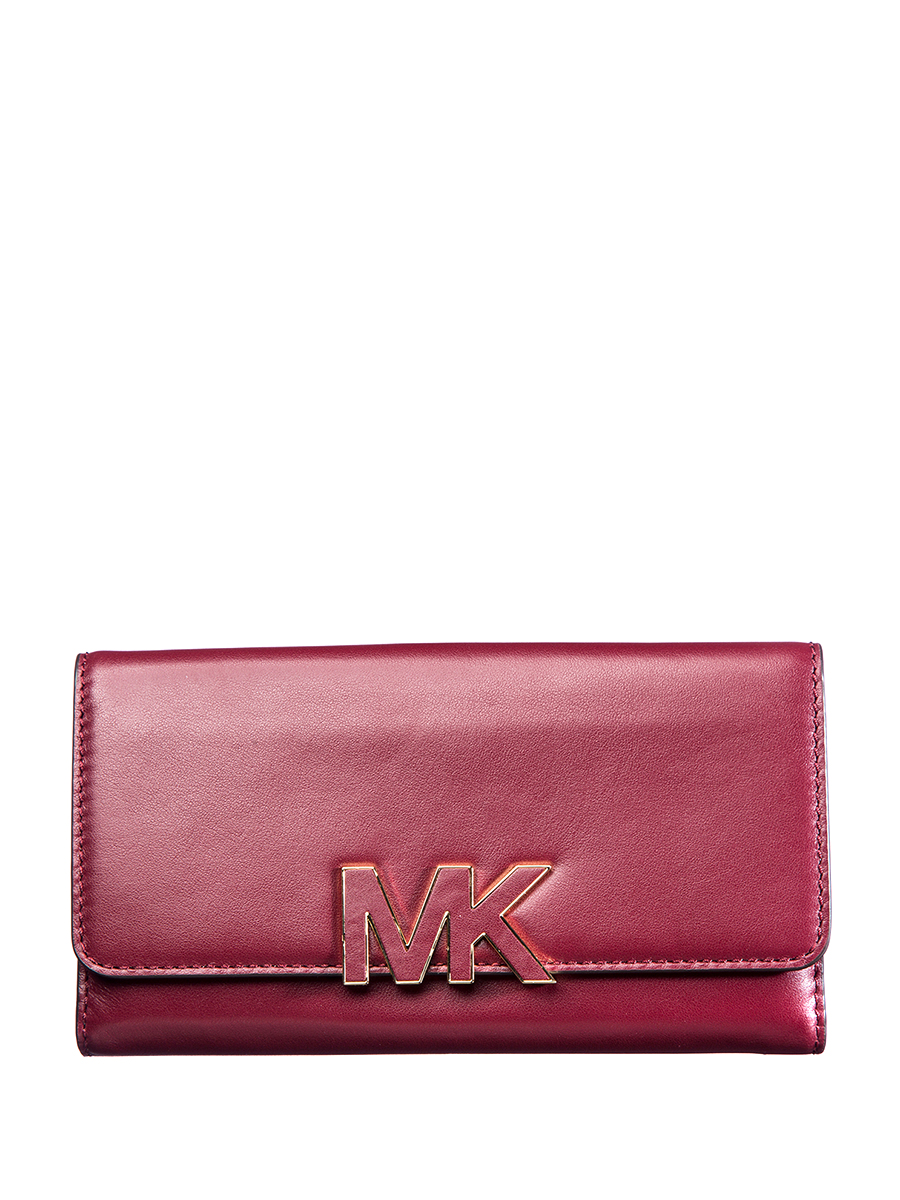 Michael Kors FLORENCE系列酒红色Logo字母装饰翻盖长款钱包