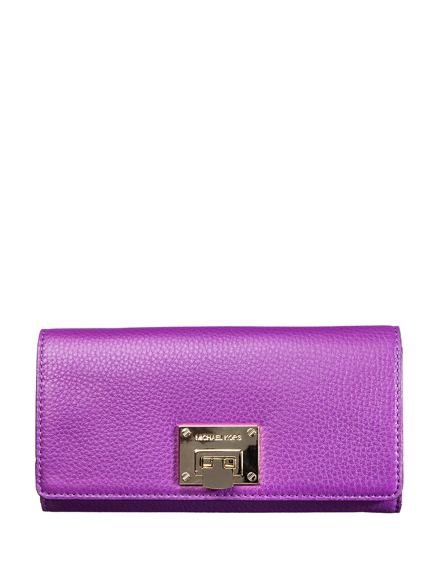Michael Kors ASTRID系列紫色荔枝纹翻盖锁扣长款钱包