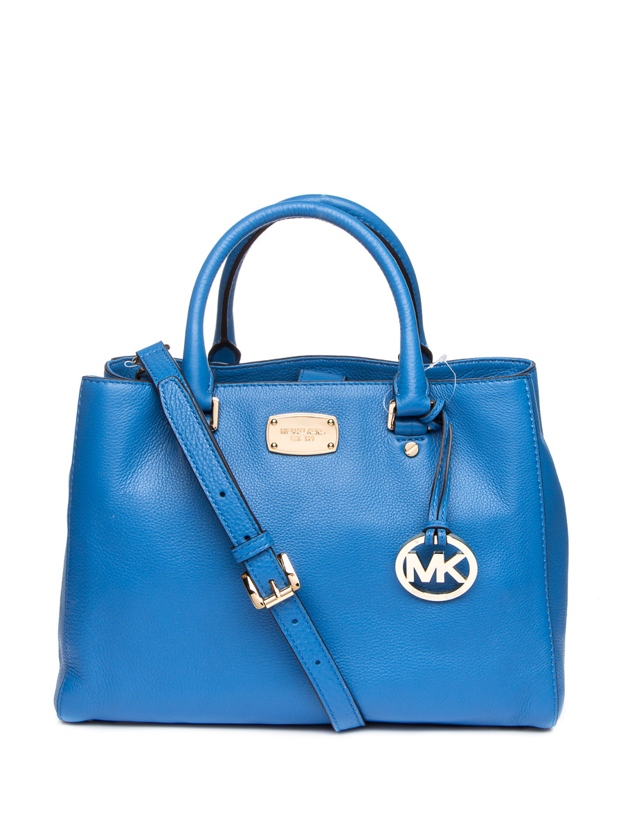 Michael Kors BEDFORD系列蓝色荔枝纹金属铭牌手提肩包