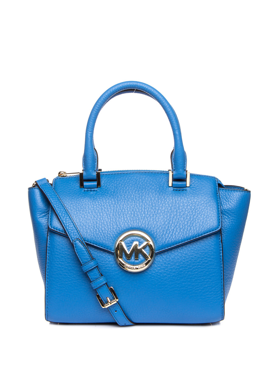 Michael Kors HUDSON系列蓝色荔枝纹翻盖贴袋手提肩包