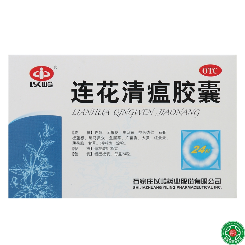产品剂型:胶囊 适用人群:不限 药品分类:非处方药 用法:口服 品牌:以岭 类别:中药 生产企业:石家庄以岭药业股份有限公司 有效期:30个月 症状:发热 使用剂量:一次4粒,一日3次 疾病:病毒性感冒 药品名称:连花清瘟胶囊 药品通用名:连花清瘟胶囊 批准文号:国药准字Z20040063 规格:0.35g*24粒/盒 查看全文