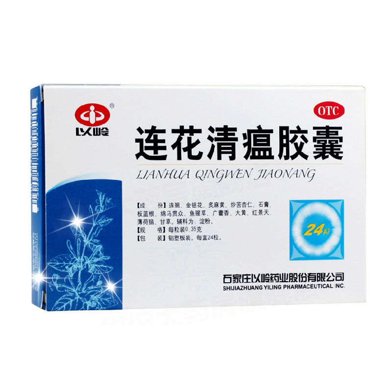 产品剂型:胶囊 适用人群:不限 药品分类:非处方药 套餐类型:标准装 用法:口服 品牌:以岭 类别:中药 生产企业:石家庄以岭药业股份有限公司 有效期:30个月 症状:发热 使用剂量:一次4粒,一日3次 疾病:病毒性感冒 药品名称:连花清瘟胶囊 药品通用名:连花清瘟胶囊 批准文号:国药准字Z20040063 规格:0.35g*24粒/盒 查看全文