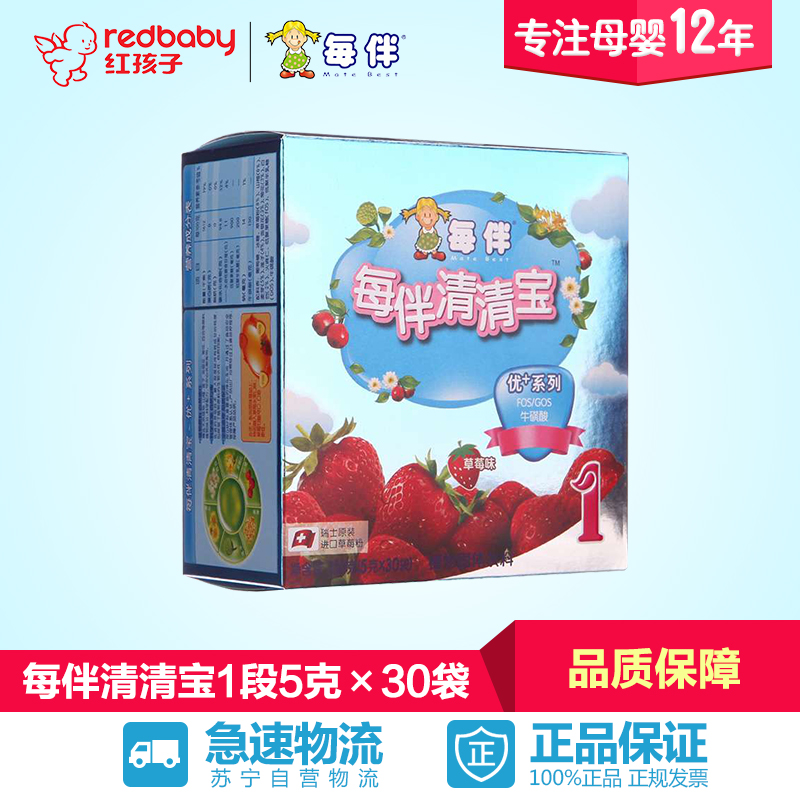【红孩子母婴】每伴(Mate best)优+草莓味清清宝1段5克*30袋