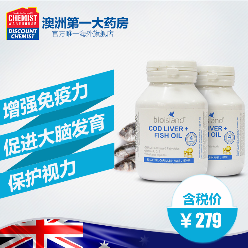 Bio Island鱼油Cod liver+fish Bio Island鳕鱼肝+鱼油90粒*2瓶