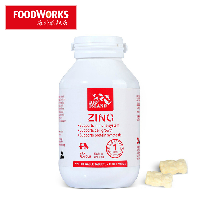 澳洲直供Bio Island 婴幼儿专注补锌小熊咀嚼片 厌食挑食