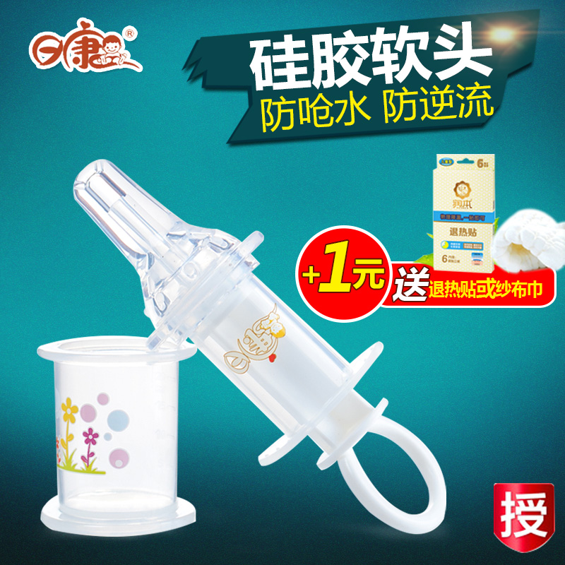 日康婴儿喂药器防呛硅胶奶嘴式给吃喝药器带刻度针筒量杯宝宝喂水