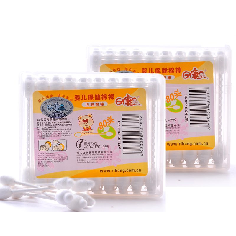 日康 婴儿保健棉棒 儿童宝宝清洁专用大头棉签80头 RK-3781*2合