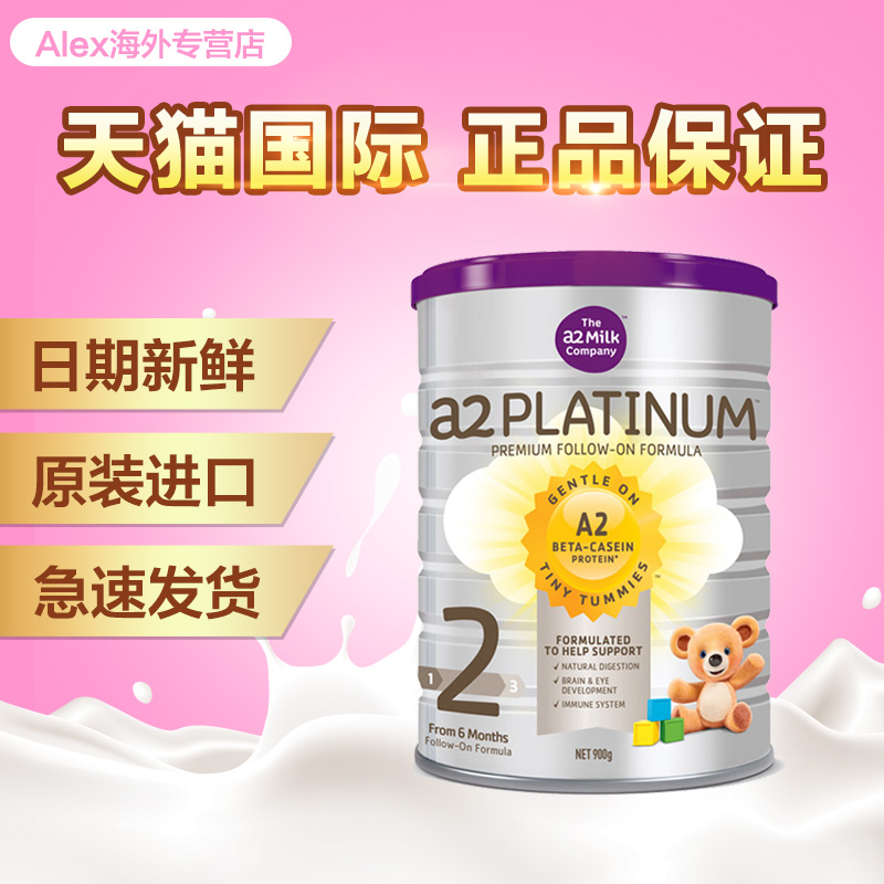 澳洲进口 A2奶粉Platinum铂白金a2 婴幼儿奶粉2段牛奶粉900g*2罐