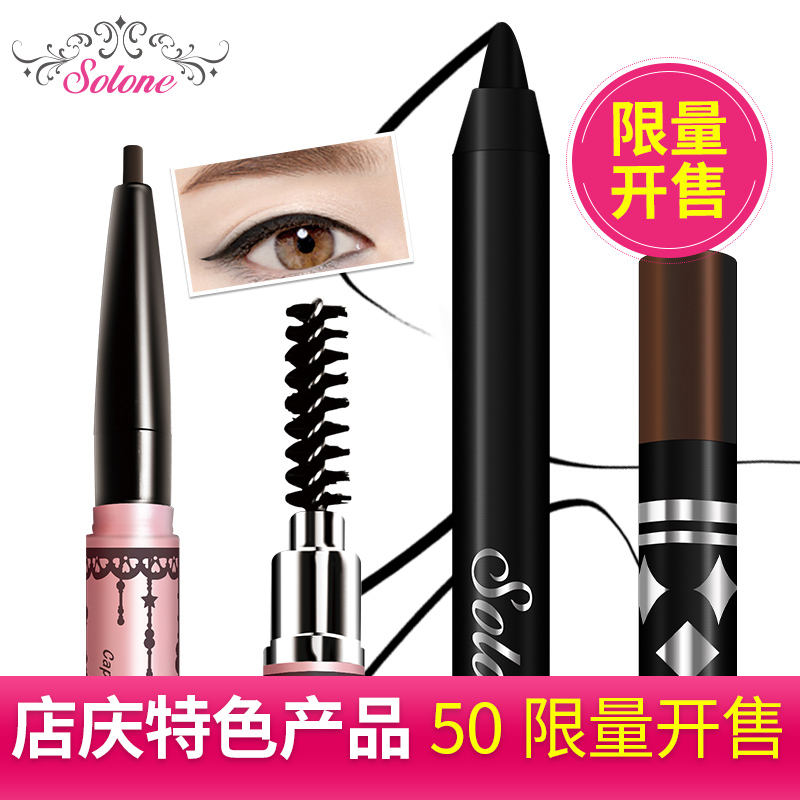 Solone眼妆彩妆套装初学者一代眼线笔防水不晕染 圆头眉笔不晕染